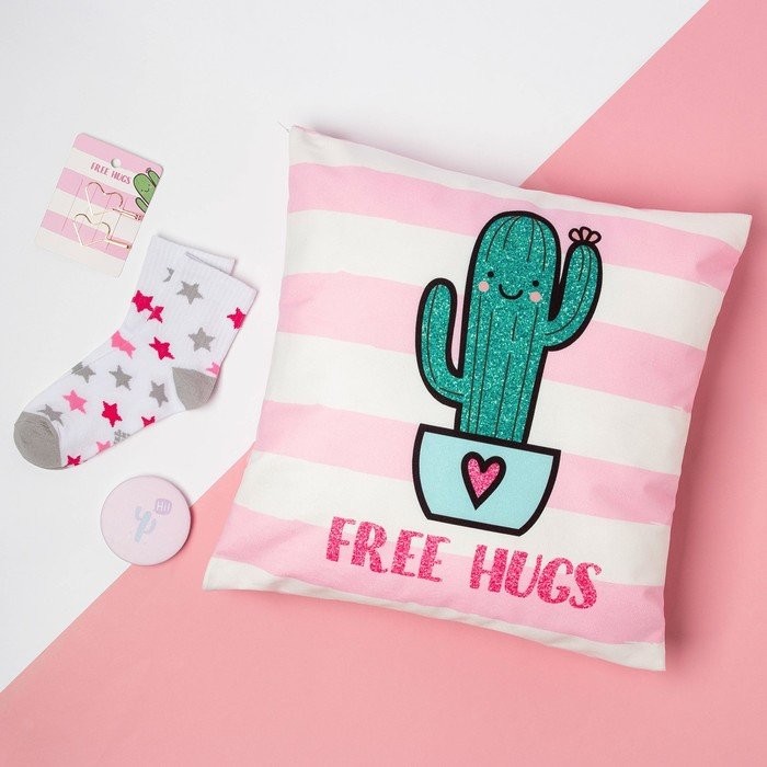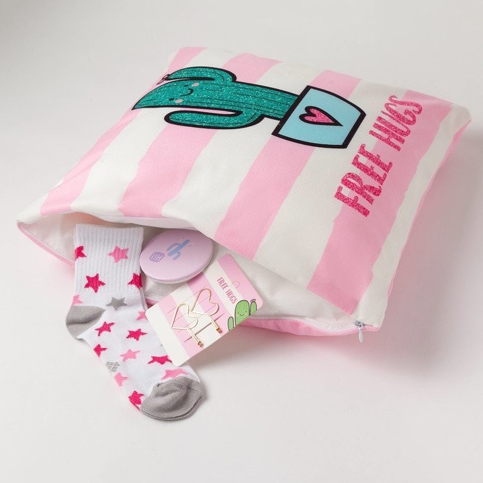 Подарочный набор «Free hugs» подушка-секрет 40×40 см и аксессуары (3 шт)