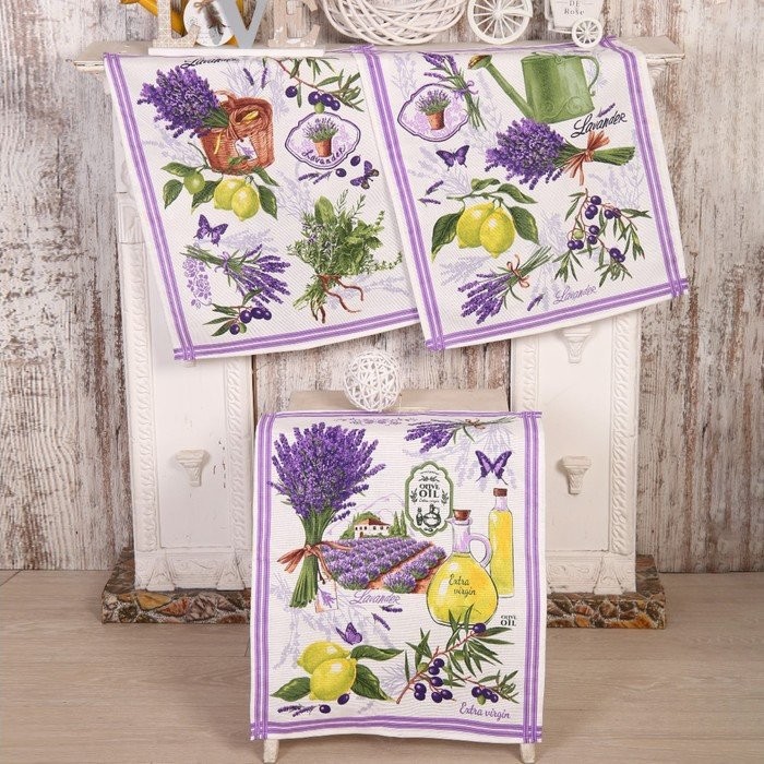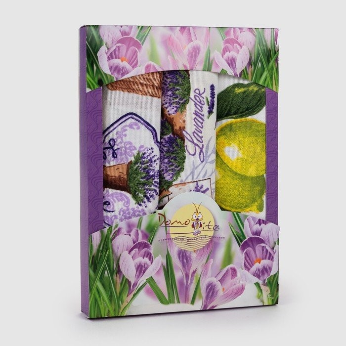 Набор полотенец в коробке Лаванда 45×60 см, 3 шт, вафля, 170 гр/м2, хлопок 100%