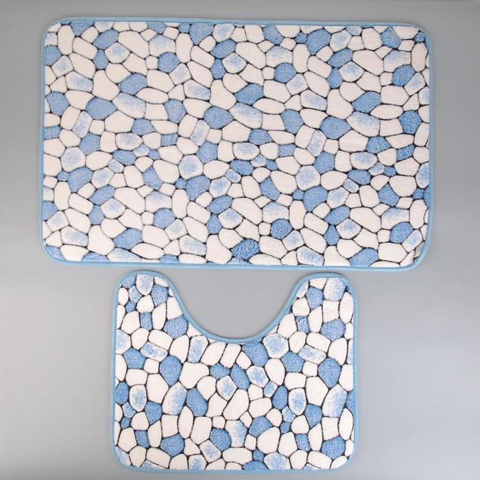 Набор ковриков для ванны и туалета Доляна «Галька», 2 шт: 40×50, 50×80 см, цвет синий