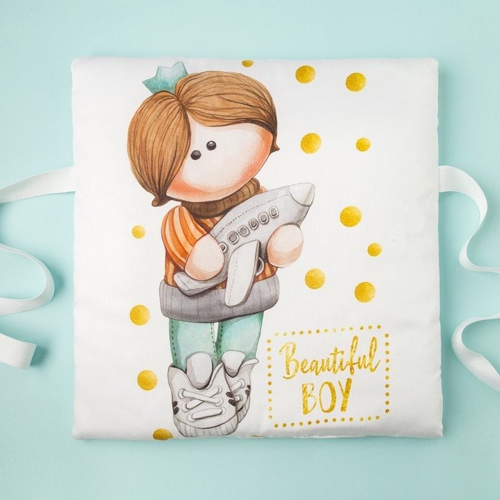 Бортики в кроватку Крошка Я «Принц Тим», цвет белый/серый, 35×35 см-8 шт, сатин