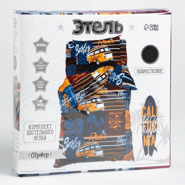 Постельное бельё «Этель» 1,5 сп Сёрфер 143×215 см, 150×214 см, 50×70 см -1 шт, 100% хл, бязь 125 г/м2