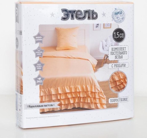 Постельное бельё Этель «Коралловая пастель» 1,5 сп 145×210±2 см, 150×210±3 см, 50×70±3 см- 1шт, мако-сатин