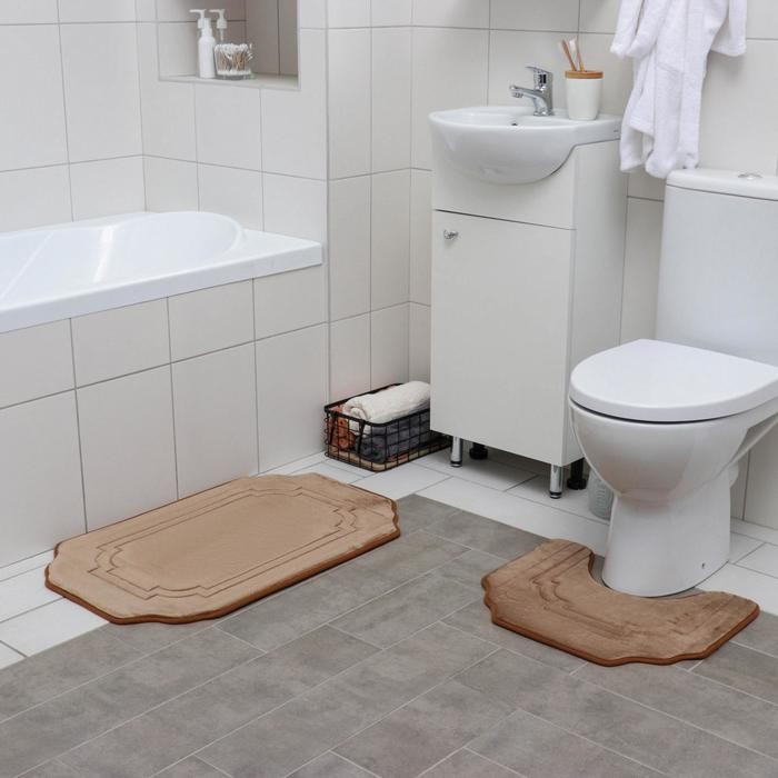 Набор ковриков для ванны и туалета Доляна «Гранж», 2 шт: 40×50, 50×80 см, цвет МИКС