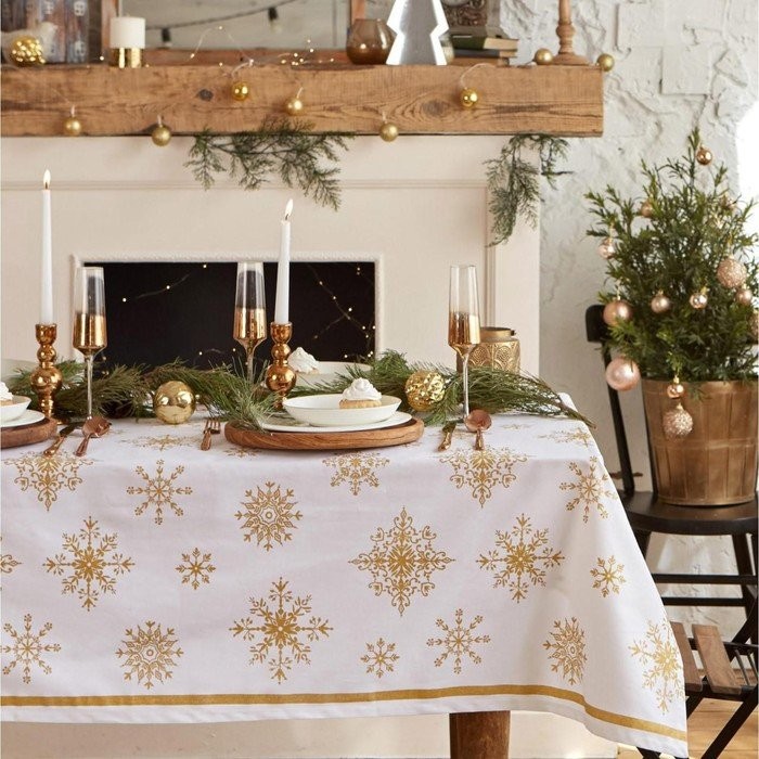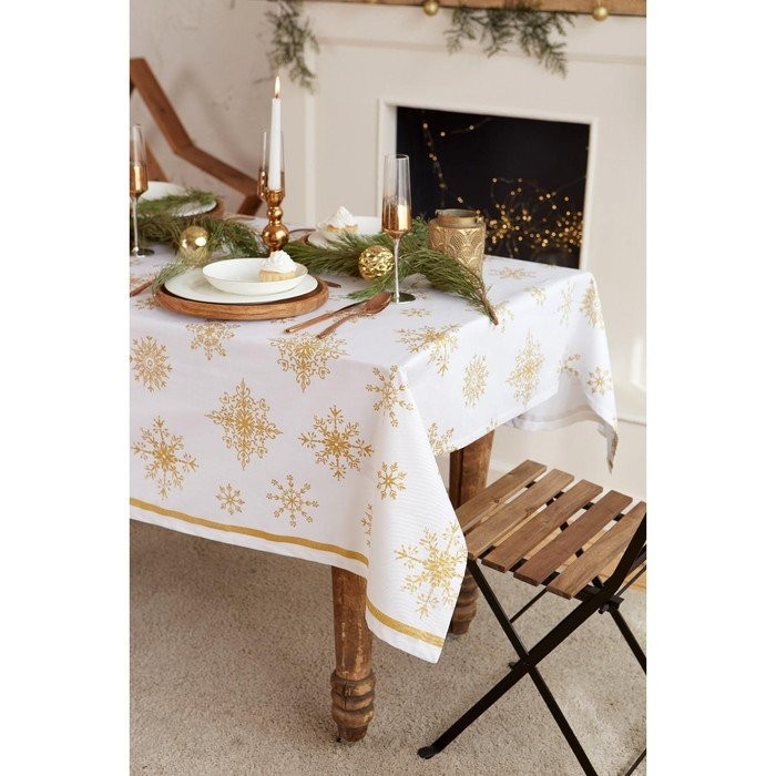 Скатерть «Этель» Золотые снежинки 149х250см, 100%хл, 190 г/м2