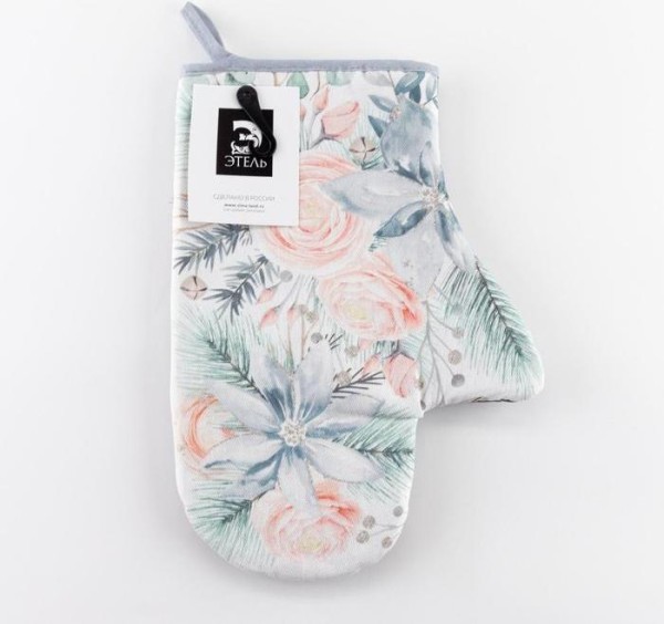 Варежка-прихватка «Christmas flowers» 20х28см, саржа, 100% х/л, ватин 250г/м2