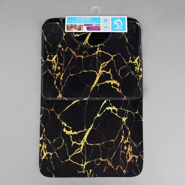 Набор ковриков для ванны и туалета Доляна «Мрамор», 2 шт: 79×50, 50×39 см, цвет чёрный