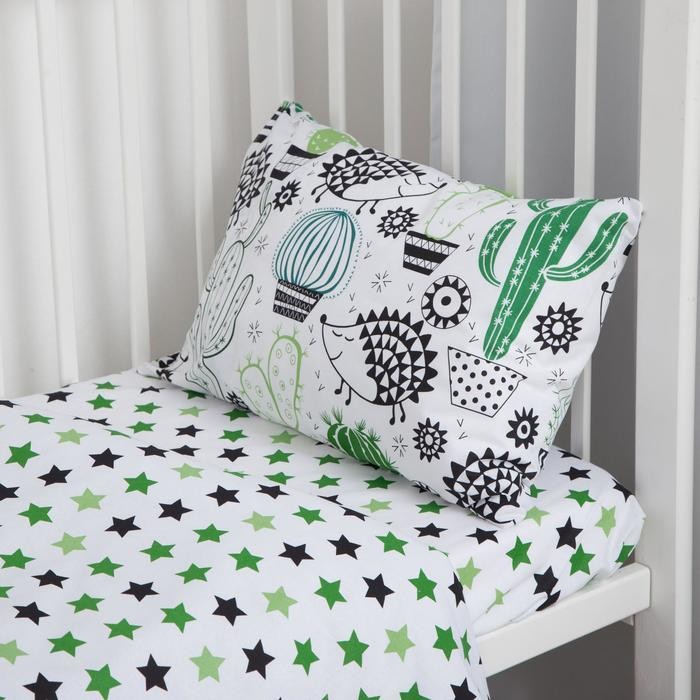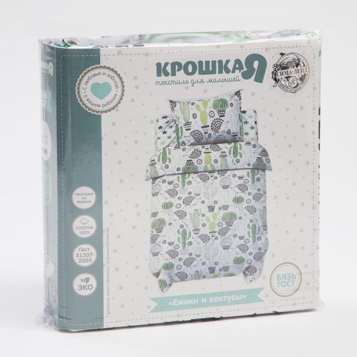Постельное бельё детское Крошка Я «Ёжики и кактусы», 147×112 см, 60×120 + 20 см, 40×60 см