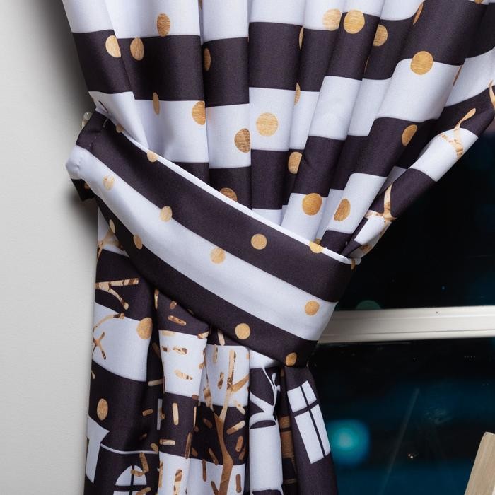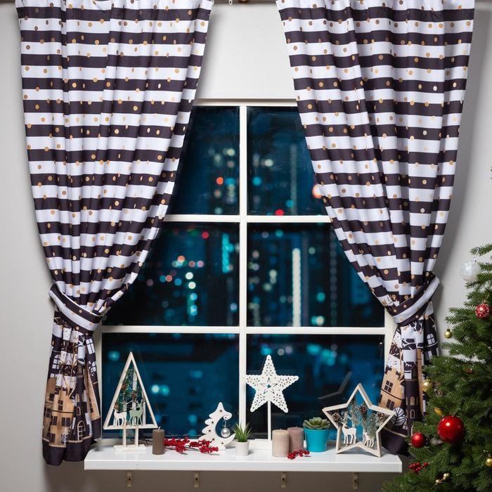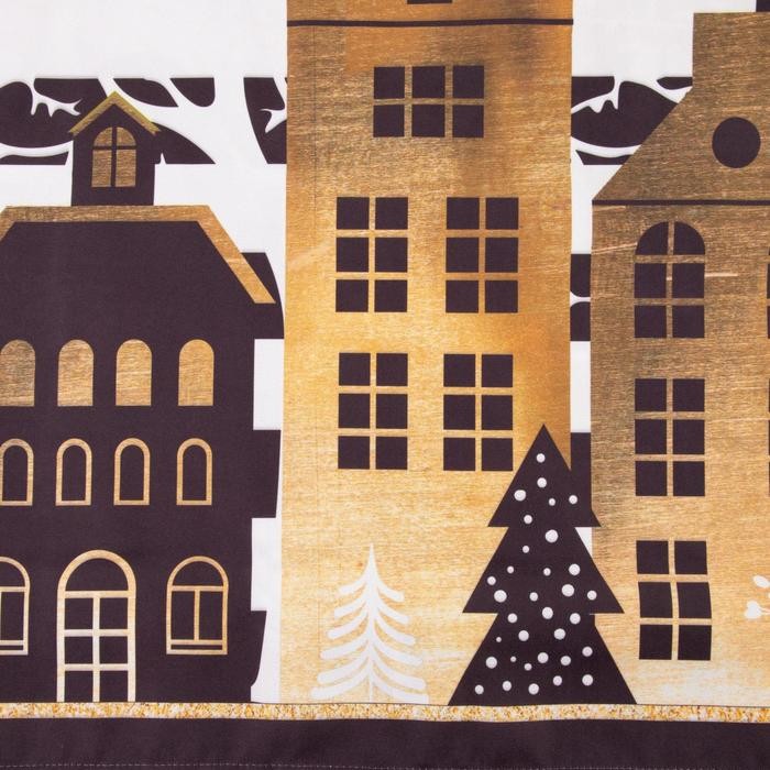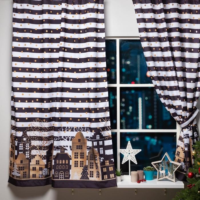 Новогодний комплект штор для кухни с подхватами «Золотой город» 145х180см-2 шт., габардин