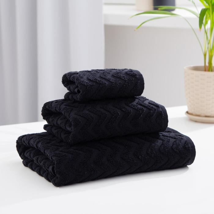 Полотенце махровое LoveLife Zig-Zag 30*60 см, цв. черный,100% хл, 360 гр/м2
