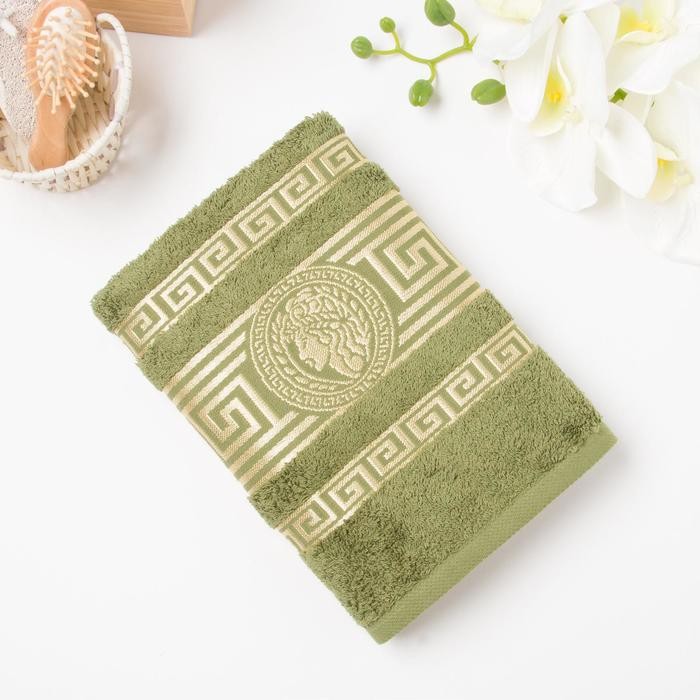 Полотенце махровое жаккардовое Афина 70×140 см, оливковый, хлопок 100%, 450г/м2