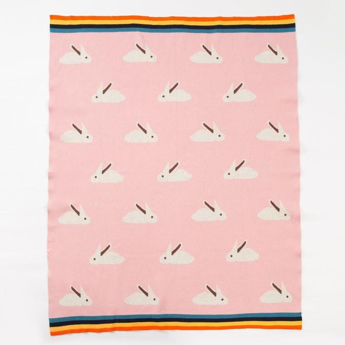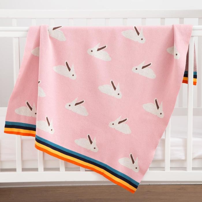 Плед вязаный Крошка Я «Зайки» цвет розовый, 80×100 см