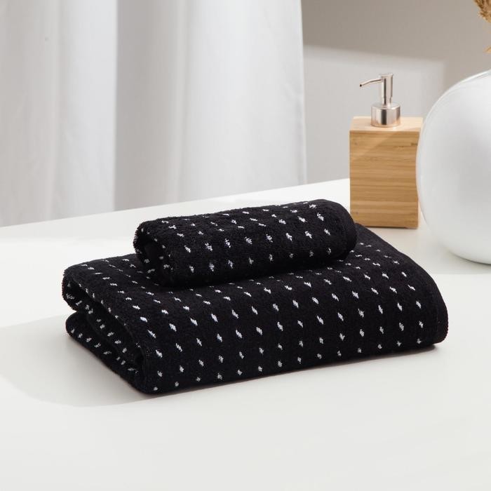 Полотенце махровое Этель ЧБ «Пунктир», пестроткань, 70×130 см