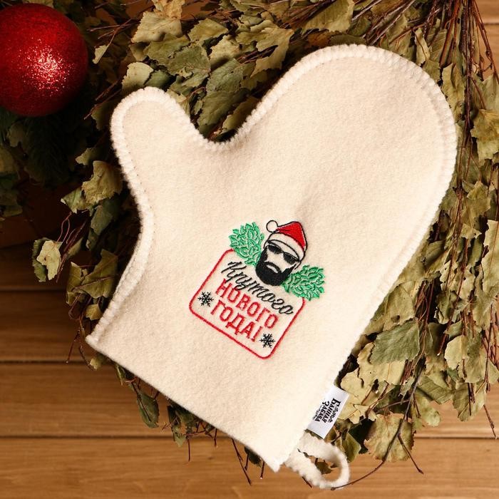 Рукавица для бани с вышивкой «Крутого Нового года!»