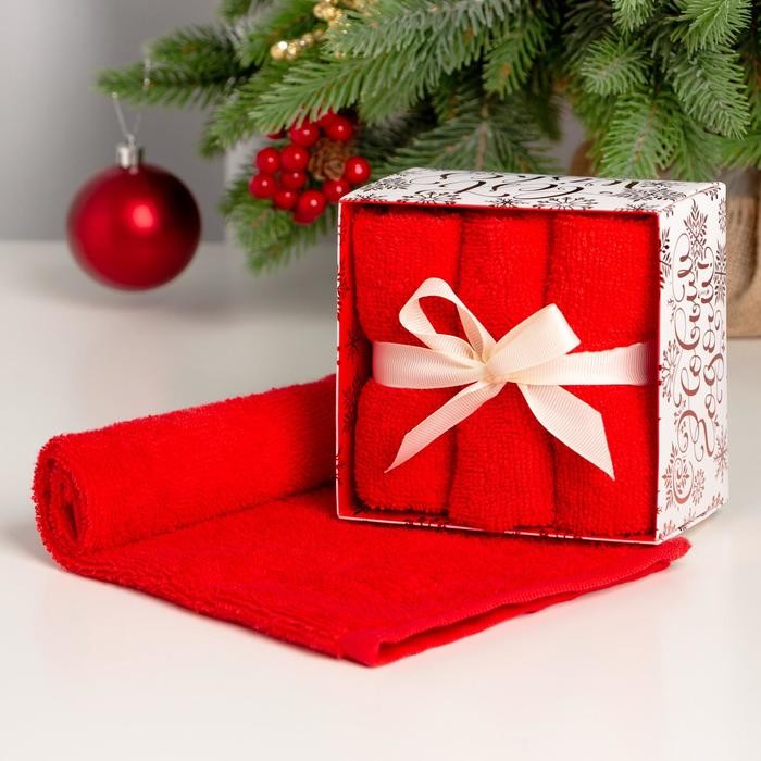 Набор махровых полотенец «С Новым годом» 30×30 см — 3 шт, хлопок 340гр/м2