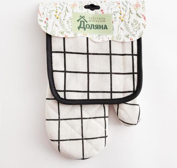 Кухонный набор Доляна «Клетка» цв.белый, прихватка 17*17 см, рукавица 26*16 см,100% п/э