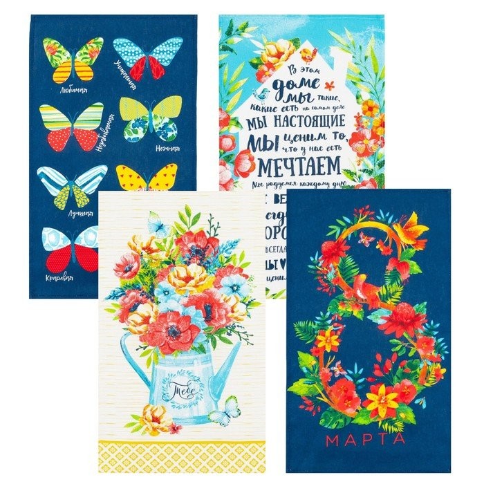 Набор кухонных полотенец Доляна «8 Марта», 35х60см-4шт, 100% хл