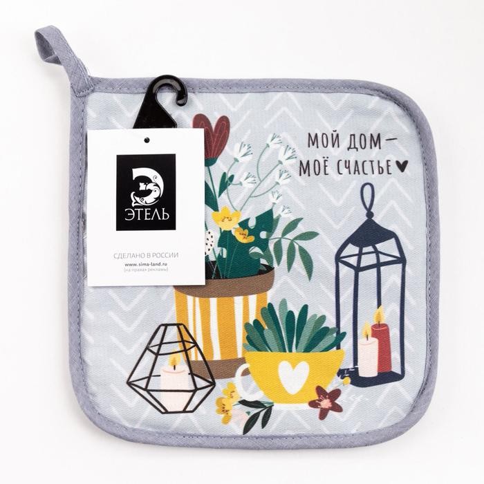 Прихватка «Мой дом — мое счастье» 19×19 саржа,100% х/л,ватин 250г/м2