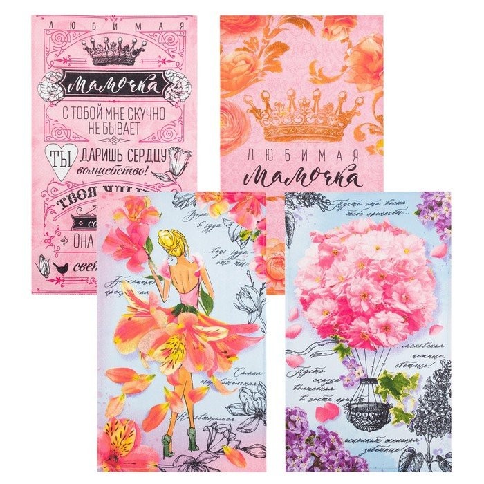 Набор кухонных полотенец Доляна «Любимая мамочка», 35х60см-4шт, 100% хл