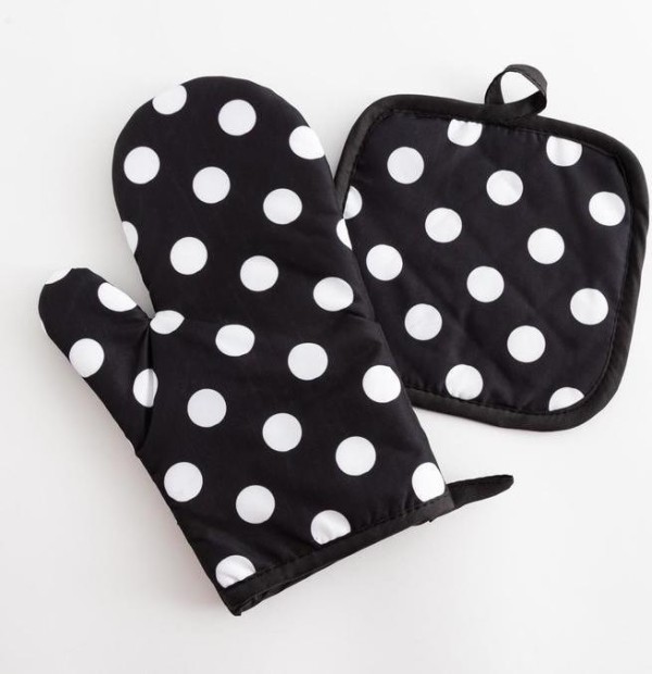 Кухонный набор (2 предмета) Доляна «Горох», цвет черный, прихватка 17×17 см, рукавичка 26×16 см, 100% п/э