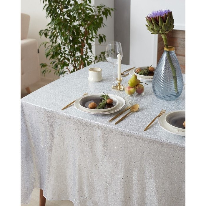 Скатерть с пайетками, цв.серебро, 280*280 см