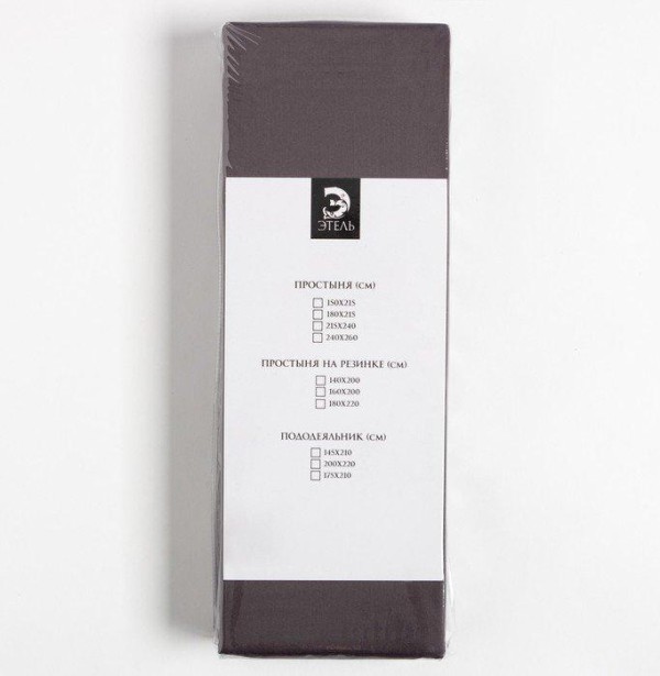 Простыня на резинке Этель 140*200*25 см, цв.темно-серый, 100% хлопок, мако-сатин, 125 г/м²