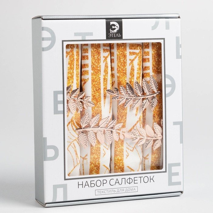 Набор салфеток с декорат. кольцами «Gold» 46х46см — 4 шт, 100% хл, саржа 190гр/м2