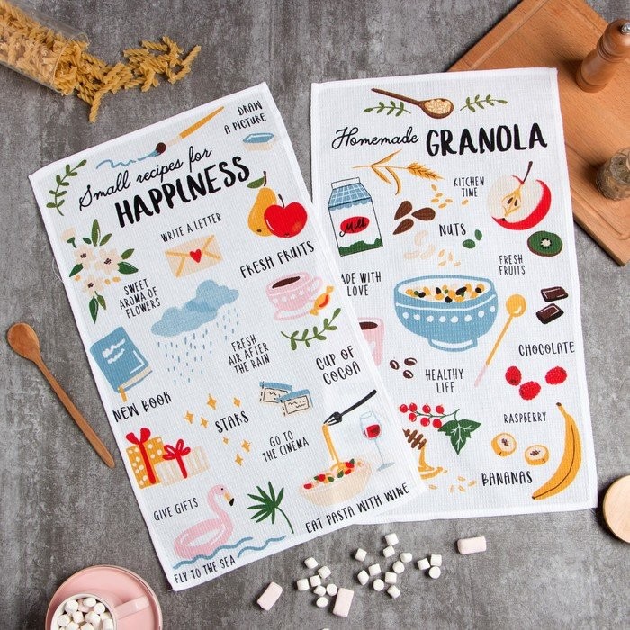 Набор кухонных полотенец Доляна «Рецепты счастья», 35х60см-2шт, 100% хл