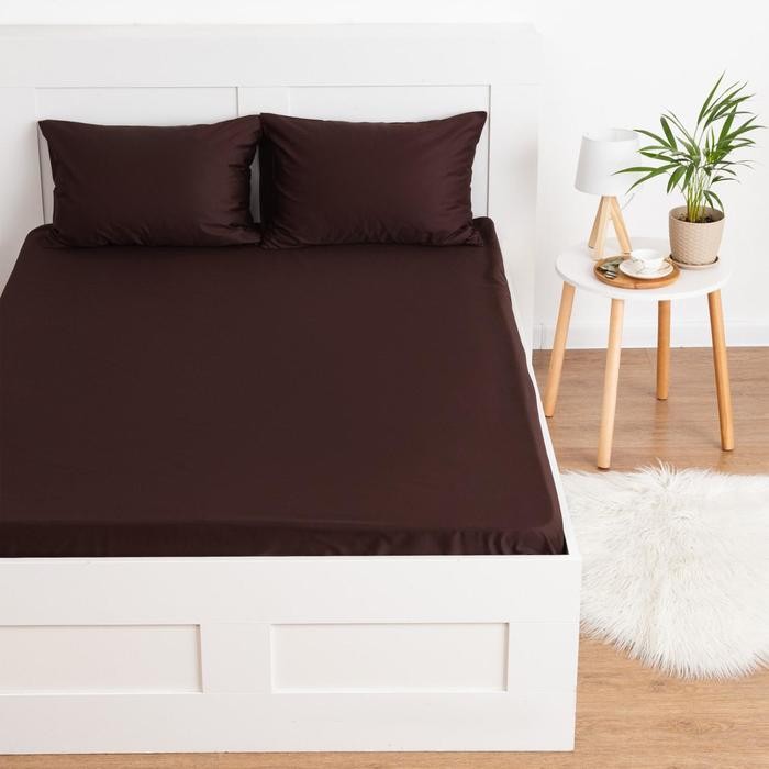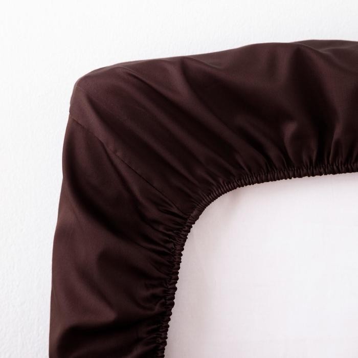 Простыня на резинке Этель 180*200*25 см, цв.темно-коричневый, 100% хлопок, мако-сатин, 125 г/м² 5373