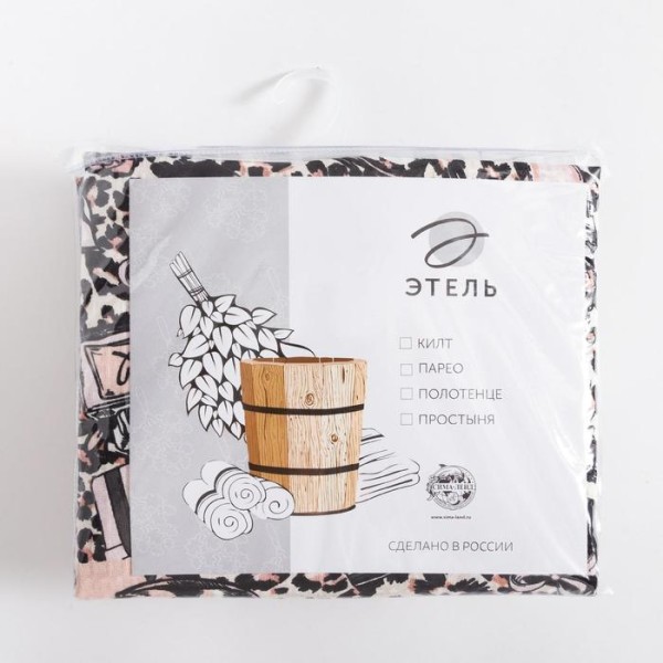 Набор для сауны Этель «Леопард» парео 80*144 см + чалма, вафля 200г/м2, 100% хл